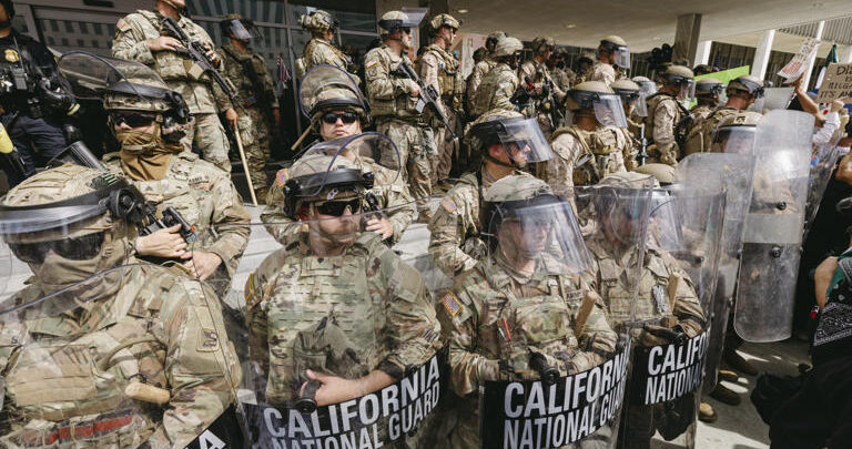 وفي 7 يونيو، تولى الرئيس ترامب قيادة الحرس الوطني في كاليفورنيا ونشر ما يقرب من 4000 جندي في لوس أنجلوس ردًا على الاحتجاجات والاضطرابات واسعة النطاق بشأن سياساته المتعلقة بالهجرة، كما أمر بنشر 700 جندي إضافي من مشاة البحرية الأمريكية في المدينة.