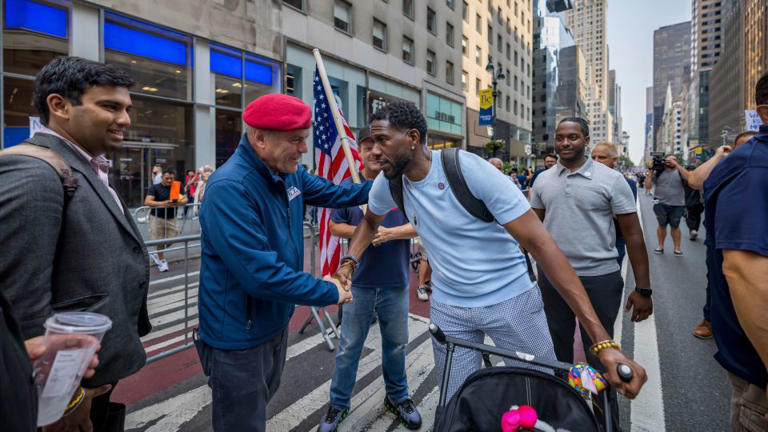 حتى أنهم ساروا بالقرب من برج ترامب، حيث هتفوا وصفقوا للمتظاهرين الدائمين في الجهة المقابلة من الشارع، لكنهم لم يتوقفوا للتفاعل.