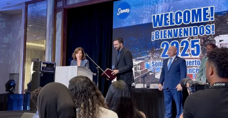 تحدث ممداني وهوتشول إلى الحشود في نفس حفلات الاستقبال ثلاث مرات خلال المؤتمر، وسارعت الحاكمة إلى الترويج للنجم الجديد البارز في الحزب.