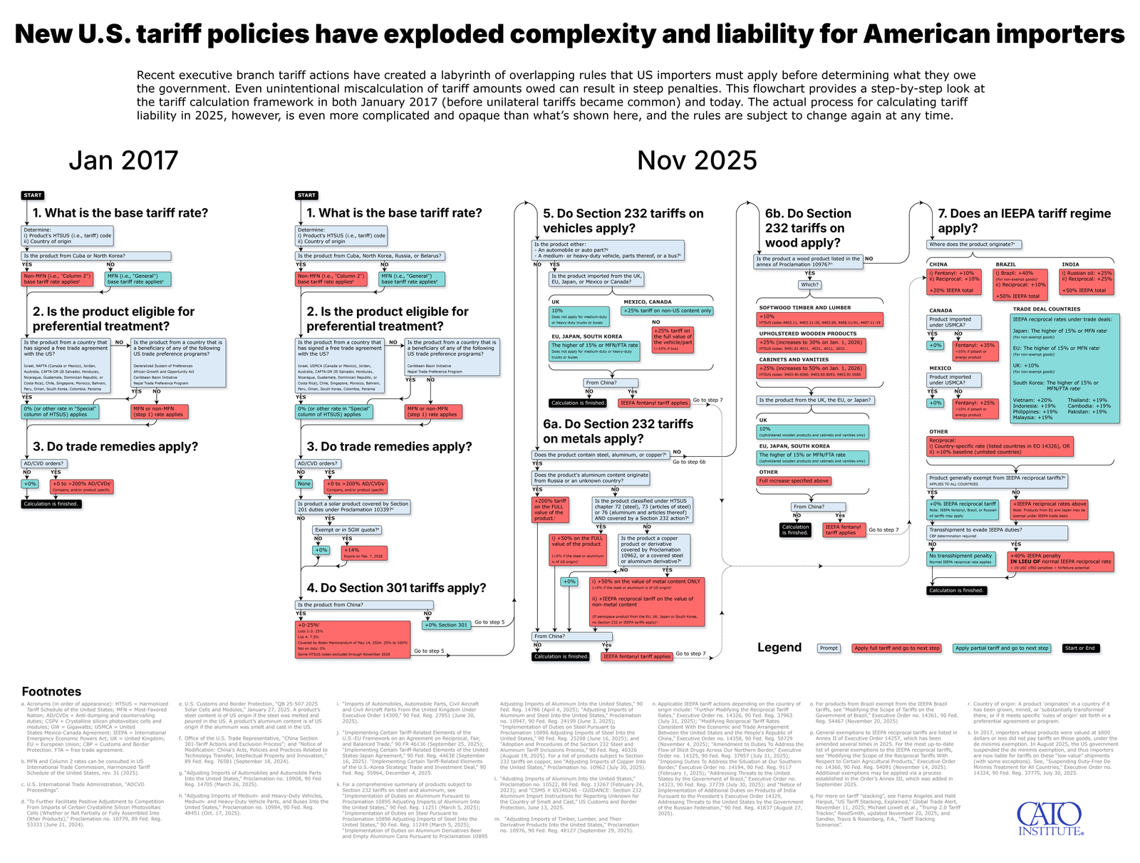 أولًا؛ تحول النظام القانوني للتعريفات الجمركية الأمريكية من بسيط ومباشر نسبيًا إلى نظام يضم العديد من القوانين واللوائح والإجراءات المتداخلة. اعتبارًا من هذا الأسبوع، يُطبّق ما يصل إلى 17 إجراءً جمركيًا أمريكيًا مختلفًا وسبعة أنظمة قانونية مختلفة على كميات تجارية كبيرة من الواردات إلى الولايات المتحدة – بزيادة عن ثلاثة فقط في عام 2017.