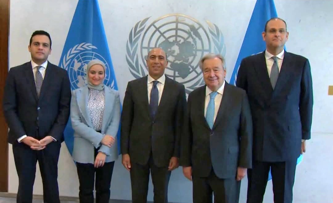 ونقل السفير إيهاب عوض، خلال اللقاء، تحيات القيادة المصرية إلى السكرتير العام، مؤكدًا التزام مصر الثابت بدعم دور الأمم المتحدة في حفظ السلم والأمن الدوليين، وتعزيز مبادئ التعددية الدولية، ودعم جهود المنظمة في مواجهة التحديات العالمية، وفي مقدمتها قضايا السلم، والتنمية المستدامة، وتغير المناخ، ومكافحة الإرهاب.