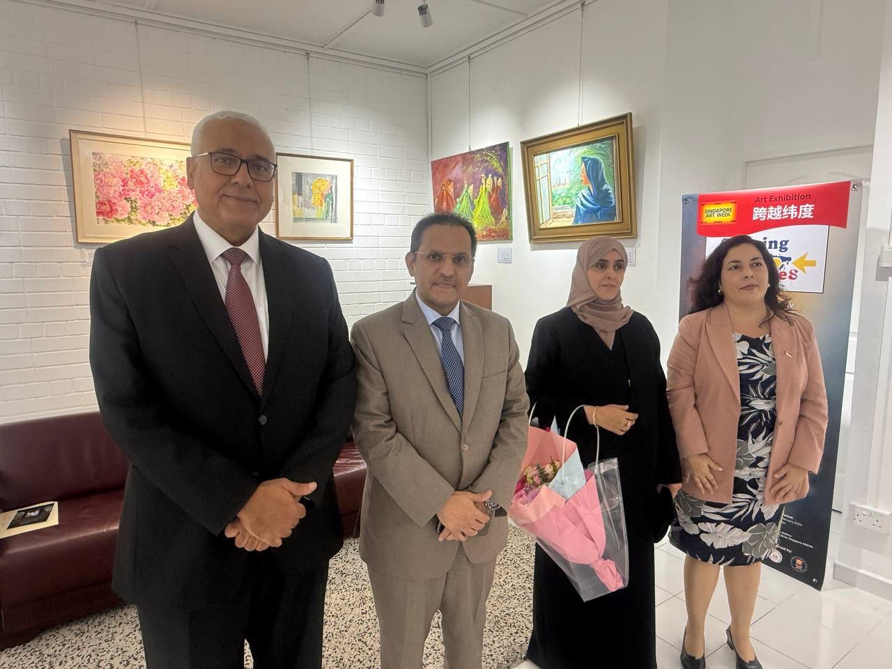 وشهد افتتاح المعرض حضور عدد من السفراء المعتمدين لدى سنغافورة، من بينهم السفير السعودي محمد بن عبدالله الغامدي وحرمه، والسفير الأردني الدكتور سعيد خالد محمد الردايدة، والسفير الكويتي أحمد عبدالناصر الشريم، والسفيرة الكوبية ليزبت كيسادا لونا، والسفير الأرجنتيني ماوريسيو نين.