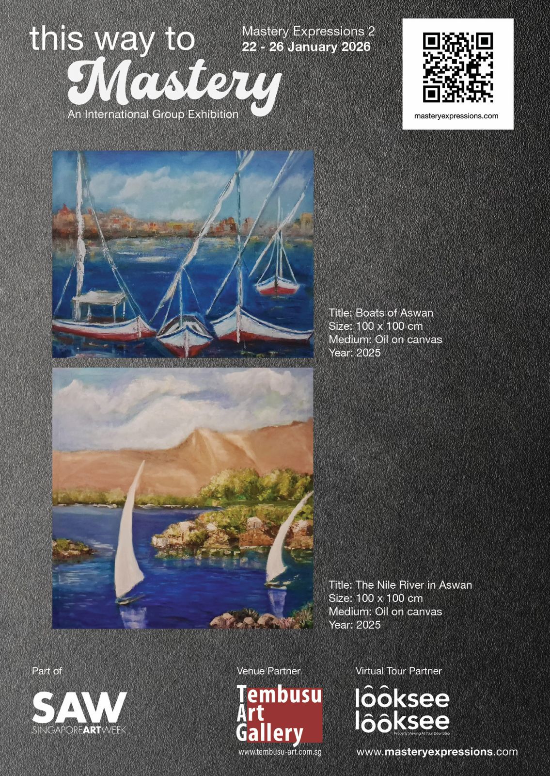 كما تشارك الفنانة التشكيلية المصرية سلوى الحمامصي في معرض جماعي دولي آخر تحت عنوان «الطريق إلى الإتقان»، يُقام في معرض تيمبوسو للفنون (Tembusu Art Gallery) ضمن فعاليات أسبوع سنغافورة للفنون 2026، بعملين فنيين بعنوان «قوارب أسوان» و*«نهر النيل في أسوان»*، منفذين بتقنية الزيت على القماش، ومستلهمين من البيئة المصرية ونهر النيل، وذلك بمشاركة نخبة من الفنانين المحليين والدوليين.