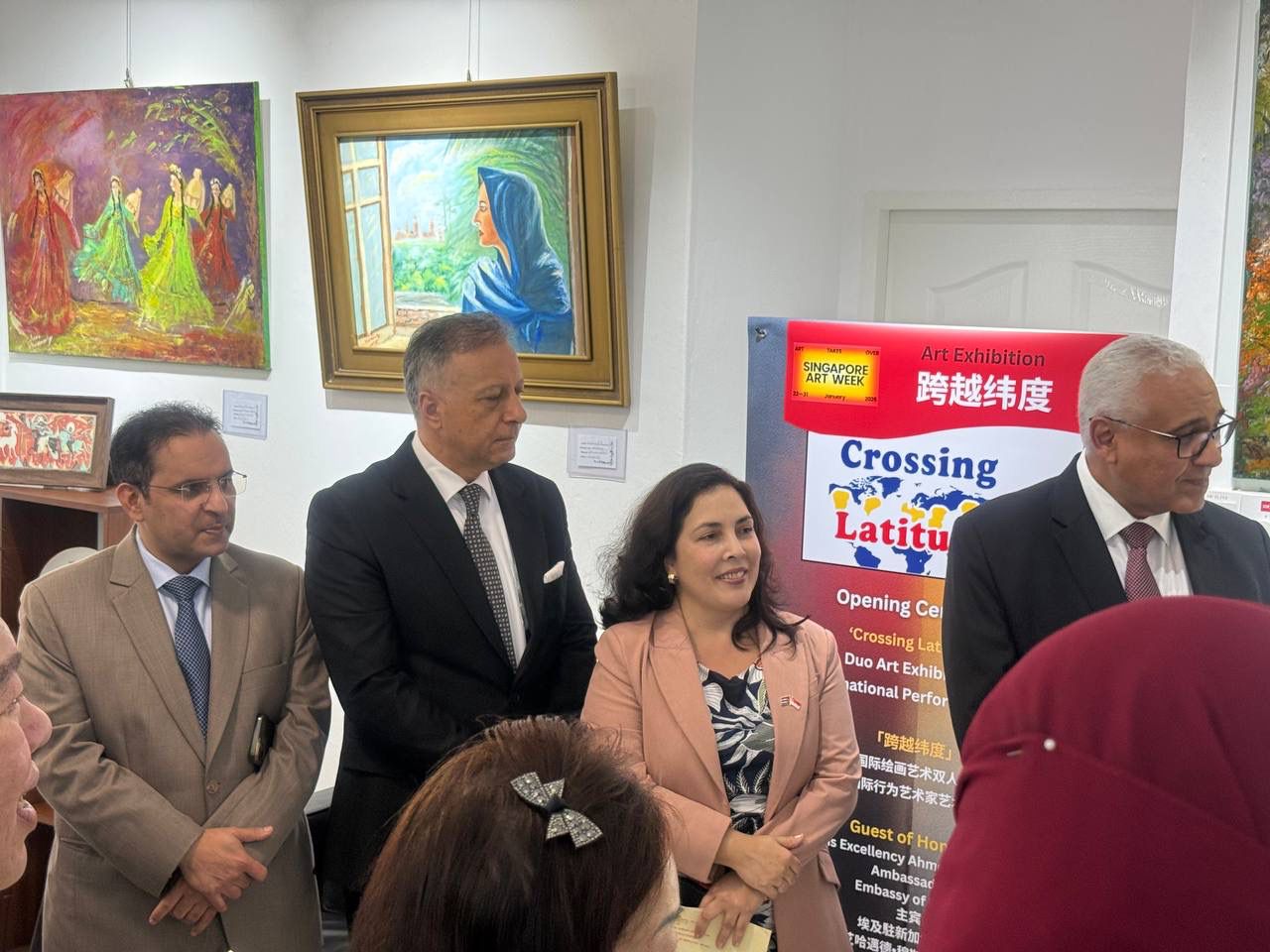 جاء ذلك خلال كلمة السفير في افتتاح معرض «عبور خطوط العرض» (Crossing Latitudes) في سنغافورة، الذي تشارك فيه الفنانة المصرية سلوى الحمامصي إلى جانب الفنان السنغافوري ويلسون شيا، ويُقام في مركز نانيانغ ستار للفنون ضمن فعاليات أسبوع سنغافورة للفنون، أحد أبرز المواسم الفنية الدولية في آسيا.