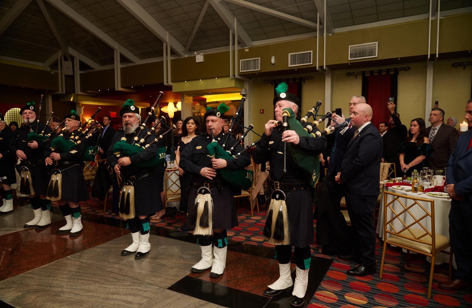 افتُتح البرنامج بمقدمة مبهرة قدمتها فرقة NYPD Emerald Society Pipes and Drums، تلاها عزف النشيد الوطني لكل من الولايات المتحدة ومصر، وأثناء تقديم الأعلام من قبل ضباط NYPD، حمل ضابط مصري العلم المصري بفخر، وهي لحظة رمزية تعكس مهمة المنظمة في تكريم التراث أثناء خدمة الوطن بتميز.